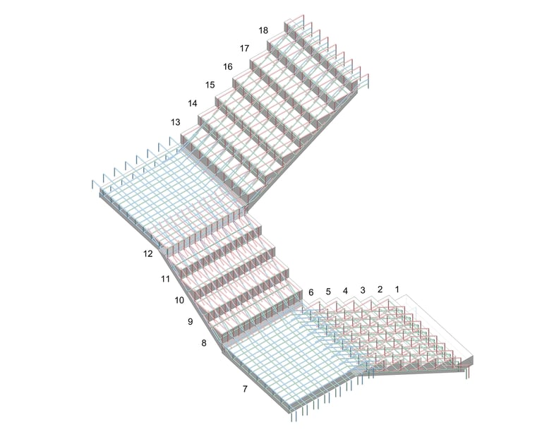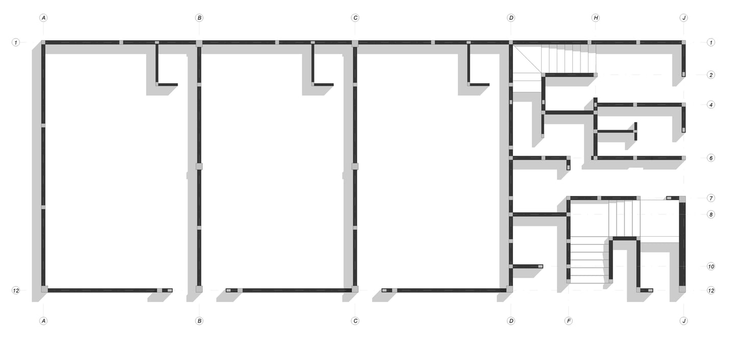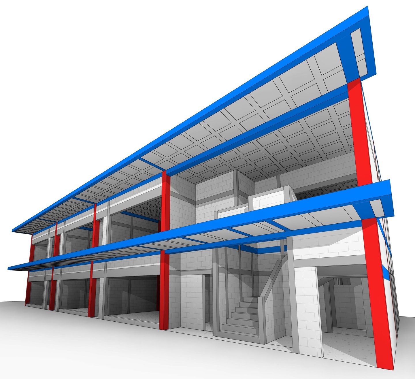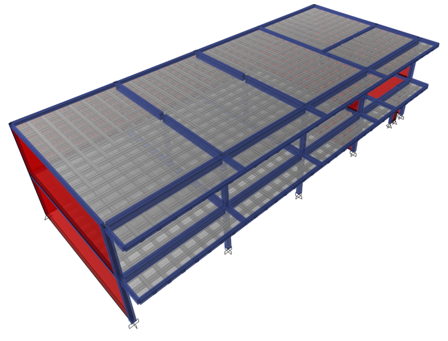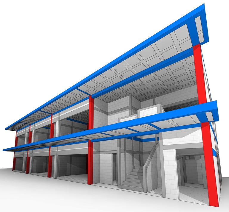 Diseño de edificación comercial de 500 m² con muros de carga de mampostería y losa nervada en 2 direcciones.