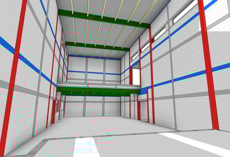 Diseño de edificación de 620 m² a base de estructura de acero y concreto reforzado con capacidad para albergar a mas de 250 personas. El diseño incluye un mezzanine que soporta las gradas ubicadas en el área del templo.